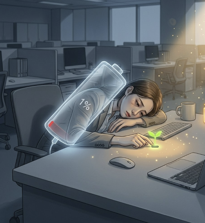 - 작은 통제권 회복: 번아웃은 내 삶이 타인이나 업무에 휘둘릴 때 옵니다. 점심 메뉴를 고르는 것, 책상 위 물건 배치를 바꾸는 것 등 아주 사소한 것부터 내가 결정하고 주도하는 경험을 늘리세요.