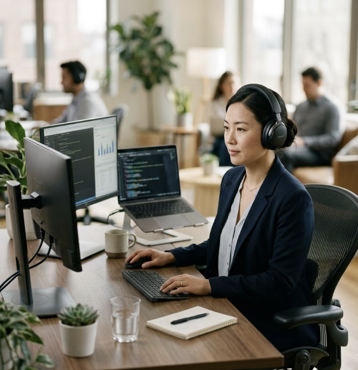- 인지 부하 감소: 우리 뇌는 주변에 소음이 있으면 이를 '중요하지 않은 정보'로 분류하여 걸러내기 위해 계속해서 에너지를 씁니다. 노이즈 캔슬링을 통해 소음 자체를 물리적으로 제거하면, 뇌는 그 에너지를 온전히 업무 몰입에 사용할 수 있습니다.