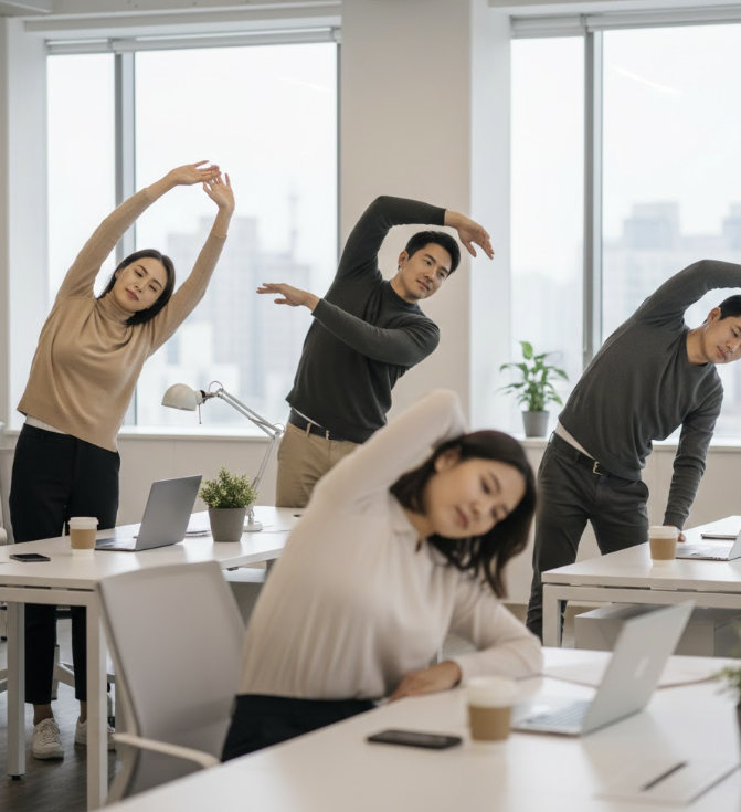 많은 분이 "퇴근하고 운동해야지"라고 생각하지만, 낮 동안 쌓인 미세 손상은 밤에 한꺼번에 풀기 어렵습니다. 스트레칭은 '근육이 굳기 전에 하는 예방책'이어야 합니다.